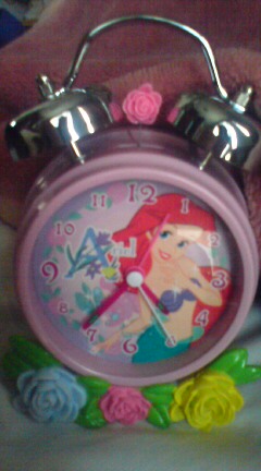 画像:新聞の勧誘のおっちゃんがくれた目覚まし時計。多分数日後にはどれか薔薇欠けてる。
